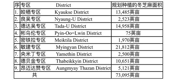 今年冬作物种植季节期间曼德勒省9个专区规划种植的冬芝麻面积如下: