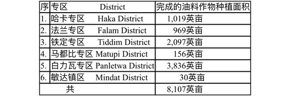 以上是由钦邦农业局处获知的数据资料。