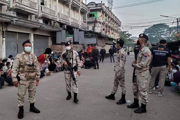 在泰缅边境妙瓦底市数以百计的边境警卫部队(BGF)加强警力值守,并且泰国方面在道茵河一侧也加强了安保。