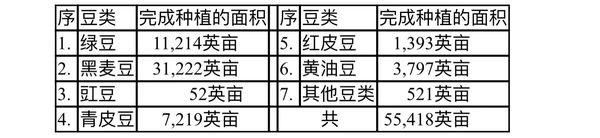 目前完成的各种豆类种植面积如下表: