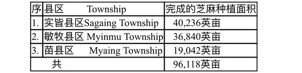 实皆专区内的3个县区目前所完成的芝麻种植面积如下表: