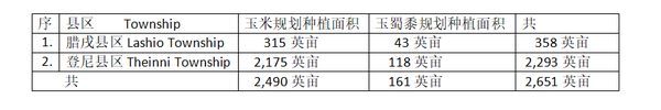 腊戌专区内各县区所规划种植的玉米及玉蜀黍如下表:
