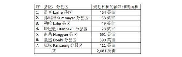 本年度那加民族自治区各县区及分县区规划种植的油料作物面积如下表: