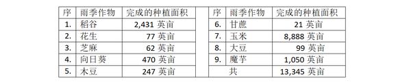 (二)钦邦法兰专区种植了13,000多英亩雨作物