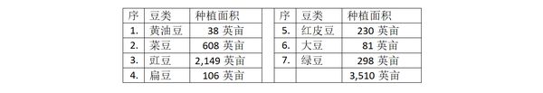 德努彪县区今年冬作物种植季节中种植的各种豆类面积如下: