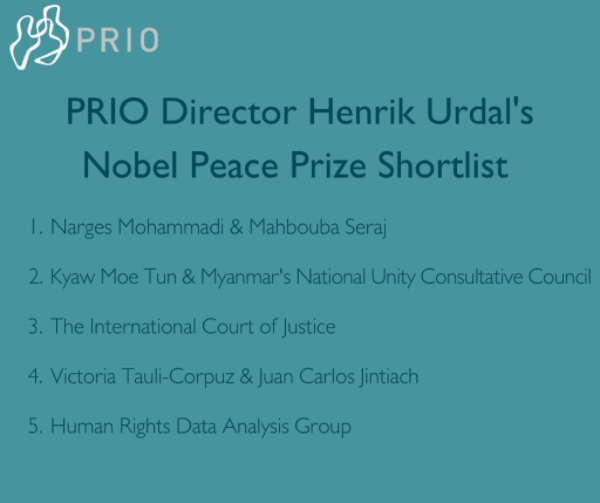 PRIO 主任 Henrik Urdal 发布的2023年诺贝尔和平奖候选名单如下: