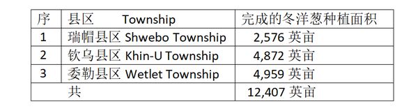 目前瑞帽专区所属各县区所完成的冬洋葱种植面积如下表: