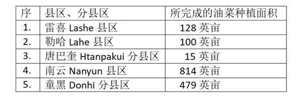那加民族自治区属下各县区、分县区所完成的油菜种植面积如下表: