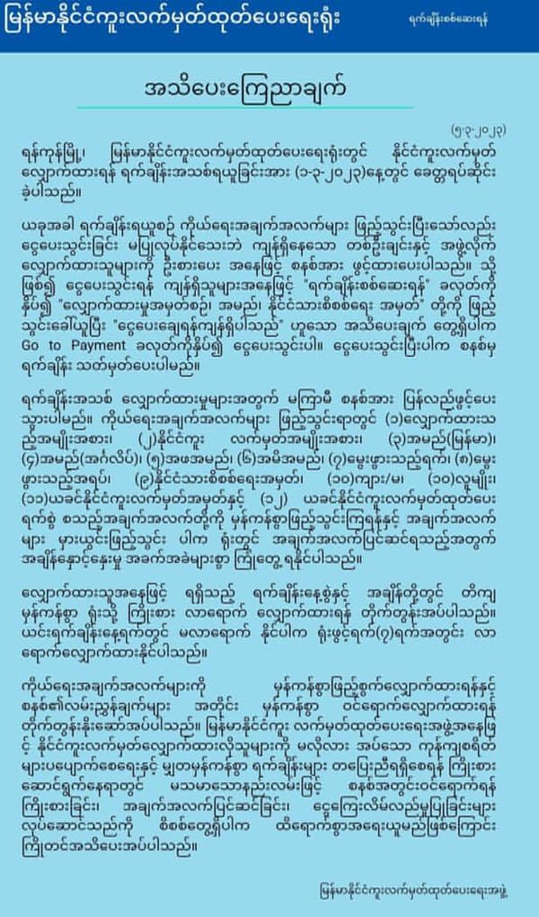 声明中表示,呼吁申请人正确填写个人信息,并根据系统提示逐步进行申请。缅甸护照办事处正努力消除不必要的成本并确保所有申请护照的人能够公平地进行预约,因此,如若发现使用不正当的手段进入系统、更改资料及骗取钱财,将采取严厉的法律行动。