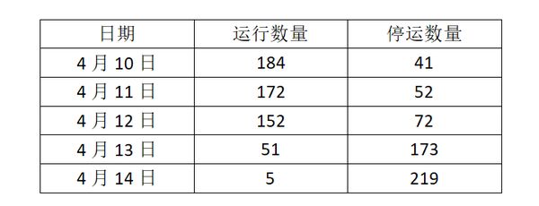 泼水节期间昂敏嘉拉长途巴士站运行和停运的具体线路数量详情如下: