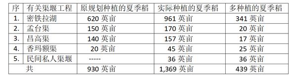 各渠堰工程原规划种植的夏季稻面积与现在实际完成的种植面积如下表: