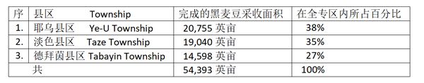 专区内的各县区所完成的黑麦豆采收面积如下表: