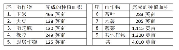 连同完成的雨季稻7,346英亩也计算在内的话,各种雨作物目前完成的种植面积已有11,356英亩,这是由县农业局方面获知的讯息。