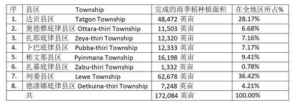 内比都地区属下的各县区在2023—24财政年度雨作物种植季节期间,雨季稻种植工作已全部完成,种植面积远超过规划面积。
