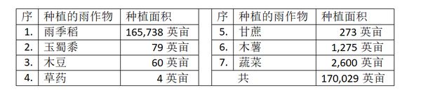 渺弥亚县区今年完成的170,029雨作物的种植工作中,各种作物的种植面积如下表: