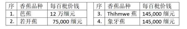 “9月份内向仰光输送出了更多的香蕉,国内市场上对香蕉的需求量还是相当大的,所以在即将到来的冬作物种植季节中,农民们还将再扩大种植这香蕉作物。”香蕉经纪所主人Daw Ei Ei Htwe这样介绍道。