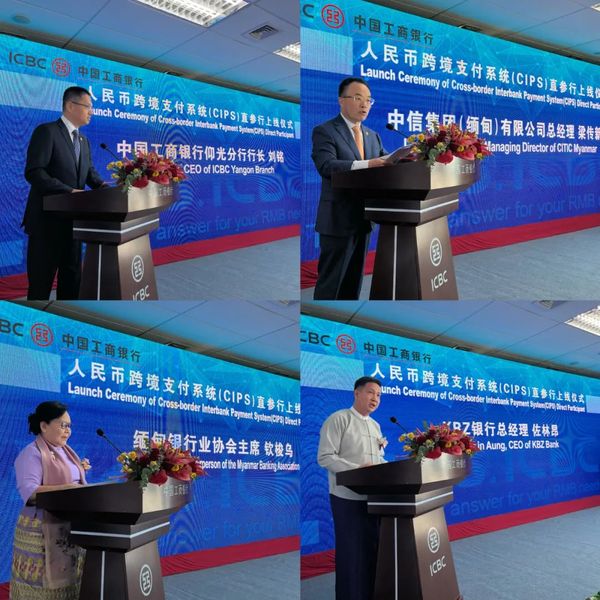 11月1日,中国工商银行仰光分行跨境人民币支付系统(CIPS)直接参与行启动仪式在仰光举行。中国驻缅甸大使陈海、缅甸央行行长丹丹穗出席并致辞,工行仰光分行行长刘铭、中信集团(缅甸)有限公司总经理梁传新、缅甸银行业协会主席钦梭乌、缅甸KBZ银行总经理佐林昂及缅甸金融同业代表等出席。