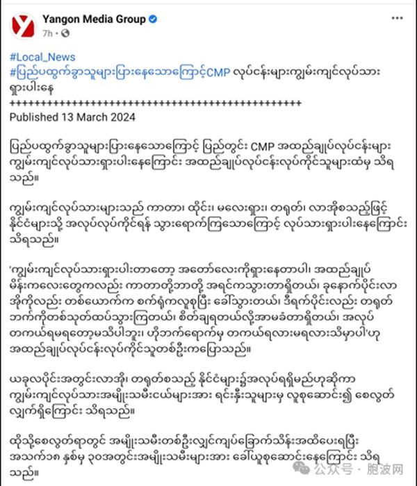 2024年3月13日讯。从成衣业者获悉,由于缅甸出国外打工者外劳激增,导致缅甸国内劳动力严重短缺,目前成衣厂劳工面临员工辞职,劳动力短缺现象。