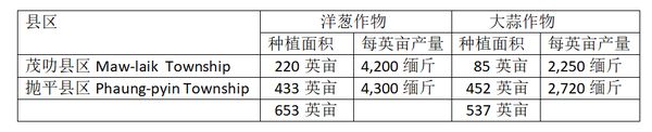 种植费用方面,洋葱每英亩约需180万缅元,大蒜每英亩约需150万缅元。
