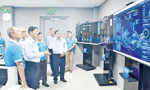 接着部长及一行人在电能调控室中视察由太阳能转化为电能后输送往国家电力网(National Grid System)的情况及电厂内采用Tracking System安装光伏板 Solar Panal的情况。