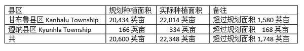 在本年度内,专区方面规划种植20,600英亩夏季稻,但在农民们的努力耕种下,全专区实际种植目了这夏季稻作物22,348英亩。