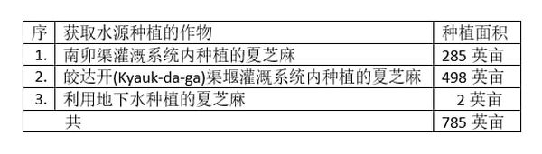 南卯县区今年夏季期间,利用渠堰之水及地下水种植的夏芝麻作物面积如下: