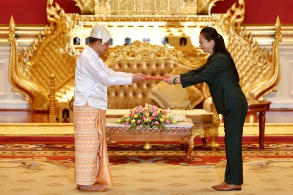 2024年8月21日,中国驻缅甸大使马珈向缅甸领导人敏昂莱递交国书。