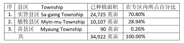 目前实皆专区内的各县区目前所完成的雨芝麻种植面积如下表: