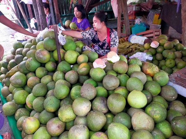 孟邦省榜(Paung)县区内,当地出产的热带水果柚子已大量地上市了。