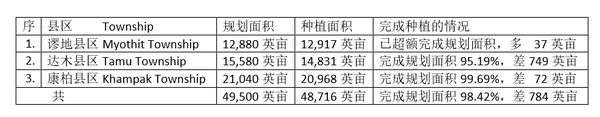 专区内的3个县区中,规划种植面积最多的是康柏县区,目前完成种植面积最多的也是康柏县区。