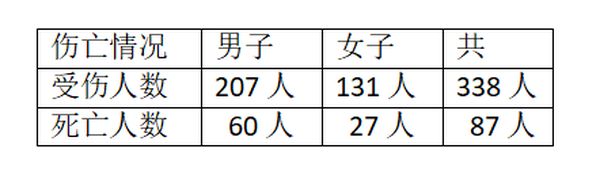 这些车祸事件中,受伤及死亡人数如下表: