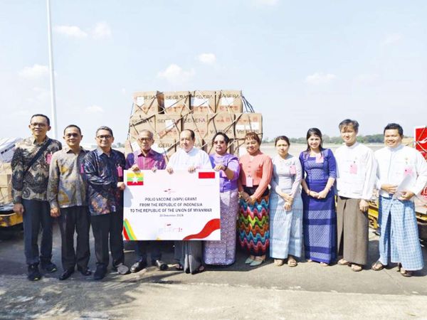 据军委会的报道,印度尼西亚政府向缅甸捐赠了271.6万剂脊髓灰质炎疫苗,其价值超过 80 亿印尼盾,并于12月21日上午9时30分钟抵达仰光国际机场。
