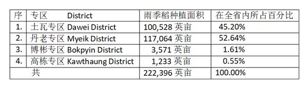 德林达依省内的4个专区今年种植的雨季稻面积如下表: