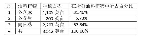 为了让各油料作物都能获得好产量,县农业局职工们都下到田头上去进行勘探工作,帮助农民们完成有关种植工作。职工们向农民们提供了所需的种植技术、良种品种种籽及预防虫害的方法等。目前完成的各种油料作物种植面积如下表: