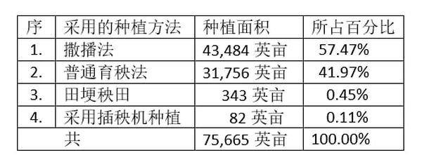 为满足当地粮食产品的需求并达到富余的地步,促进当地稻谷种植业发展,当地农民们采用堵截溪流水沟等方法存蓄水源,并利用渠堰之水进行这稻谷这种植工作。在种植时采用撒播法及育秧法等各种方法种植了雨季稻75,665英亩,超过规划面积469英亩,当地农业局一位负责人这样介绍道。