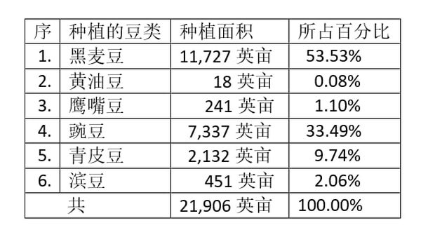 在现2024—25财政年度冬作物种植季节期间,遵纳县区种植了黑麦豆、黄油豆(Butter bean)、鹰嘴豆、豌豆、青皮豆及滨豆共21,906英亩。各种豆类目前完成的种植面积如下表:
