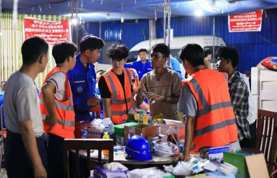 会馆不仅为民间志愿者提供后勤支持,还成为中国官方救援队的战略基地。中国救援队从这里出发,深入曼德勒多个救援点,在废墟中探测生命迹象。截至3月31日,救援队在此协调下成功救出多名幸存者,包括一名被困60小时的孕妇和一名125小时的男子。高温作业中,华人志愿者为救援队员送去冰水、盒饭,搭建遮阳棚,甚至提供充电宝等设备,保障救援持续进行。