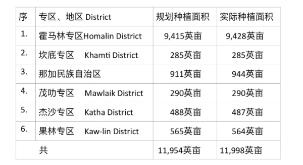 今年实皆省包括那加民族自治区在内,在种植季节规划种植茶树作物11,954英亩,现在当地农民们已完成此茶树11,998英亩的种植工作,多种植44英亩,这是由实皆省农业局方面获知的讯息。