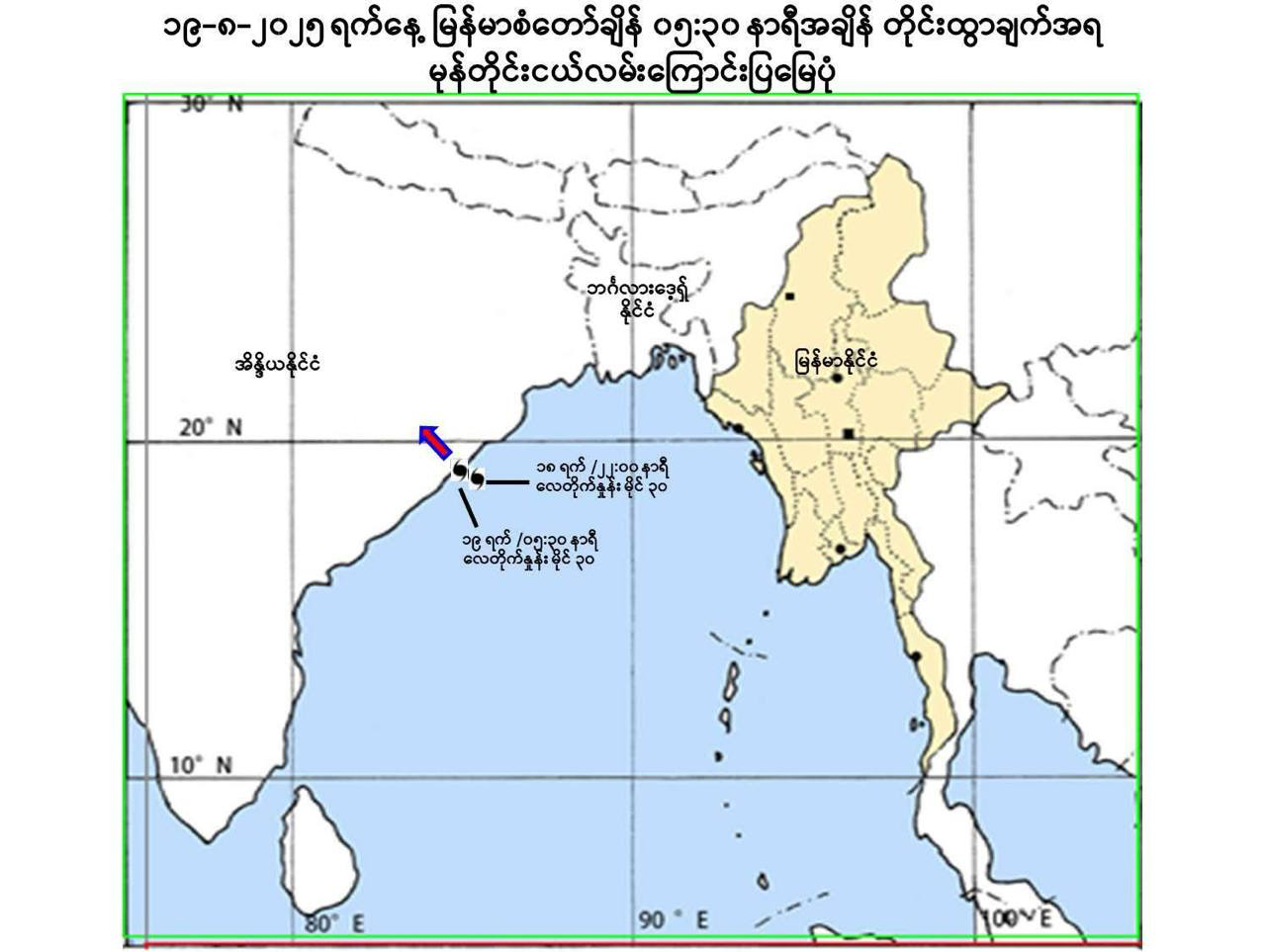 受此低压影响,预计自8月19日早晨起的24小时内,内比都、仰光省、曼德勒省、勃固省、马圭省、实皆省、伊洛瓦底省、克钦邦、钦邦、若开邦以及掸邦(南部和东部)将出现由小范围至大范围的雷阵雨天气,部分地区可能出现局部暴雨并伴有强风。