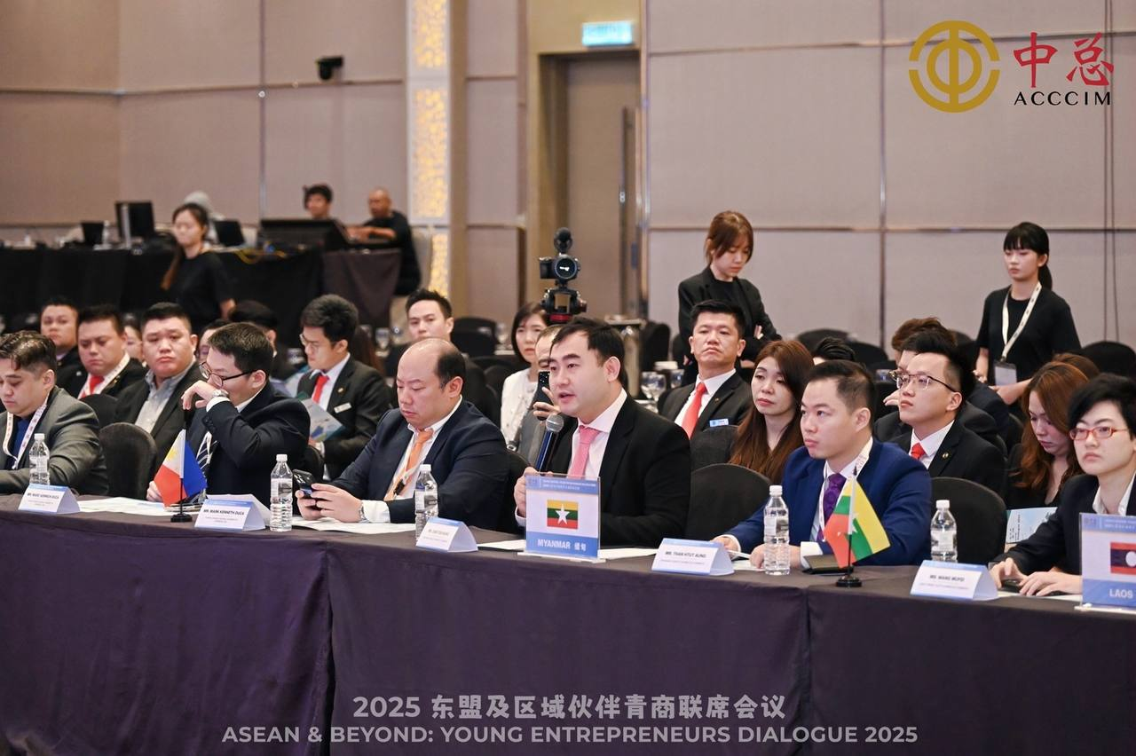 2025年8月14日至16日,马来西亚中华总商会(中总)在吉隆坡成功举办第十四届青商大会暨系列重要活动。本届大会以“立足东盟,辐射世界”为主题,汇聚了来自东盟各国、中国、日本等地的逾千名青年企业家代表。缅甸中华总商会代表团由副会长兼秘书长杨胜富率领青年委员会副主任周茂华、委员杨云海、陈龙昌、许小龙等,全程参与了欢迎晚宴、2025年马来西亚中华总商会(中总)第十四届青商大会、中总卓越青商楷模颁奖典礼及2025东盟及区域伙伴青商联席会议四大核心议程,与各地代表进行了富有成效的交流,并分享了缅甸的发展经验。“透视全球资本市场——青商如何扬帆出海迈向国际”论坛上,杨胜富副会长作为主讲嘉宾分享经验。