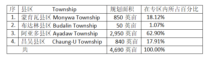 在即将到来的2025—26财政年度冬作物种植季节期间,蒙育瓦专区规划种植此黑麦豆作物4,690英亩,各县区规划种植的黑麦豆面积如下表: