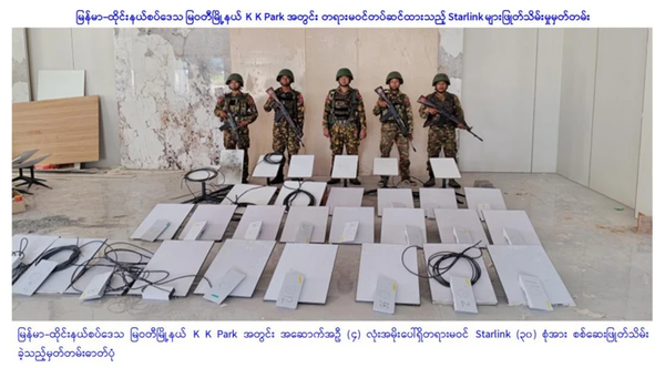 军政府表示,这2198名嫌疑人是在园区内的楼栋、仓库、建筑以及两个医疗室等地点被发现的。此外,公告称还查获了30套为进行非法通讯而安装的星链互联网设备及相关配件。