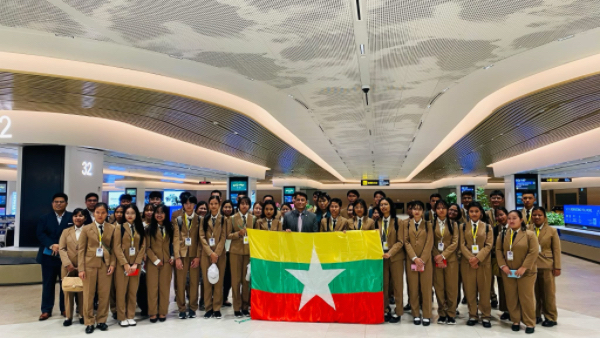 根据国家计划,赴新加坡进行考察学习的2025年大学入学考试优秀学生代表团一行33人及督导组,于2025年10月14日抵达新加坡。缅甸驻新加坡大使馆临时代办佐敏昂(ဇော်မင်းအောင်)及使馆相关官员前往樟宜国际机场迎接。