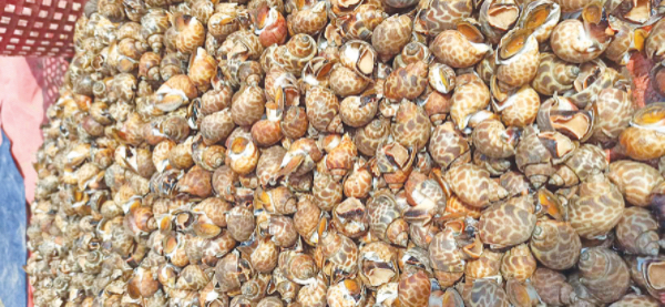目前根据捕捞到的这花蜗牛根据体型大小都能获得一定的好价钱,一艘渔船一天能捕获到这蜗牛100到300缅斤(1缅斤约等于1.6公斤),而渔船每3天返回陆地岸边一趟进行交易,现在交易情况良好,捕捞蜗牛的工作也十分顺利,所以今年从事这蜗牛捕捞工作的人数也越来越多了。