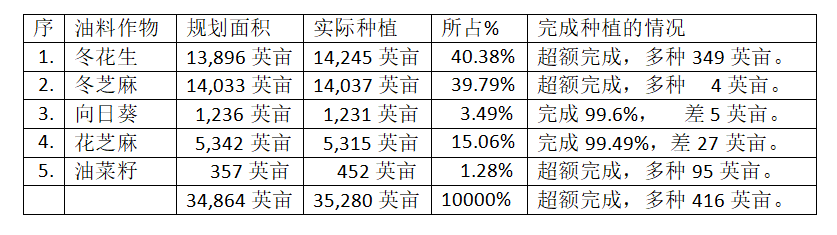 遵纳县区今年冬季规划种植的油料作物面积及目前完成的种植面积如下表: