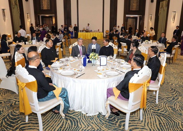 当晚,吴丁貌穗在內比都茉莉花酒店设宴款待王毅一行。缅甸航天局代理执行长梭敏貌博士(ဒေါက်တာစိုးမြင့်မောင်)、外交部及宗教事务部副部长、相关部门负责人等出席。
