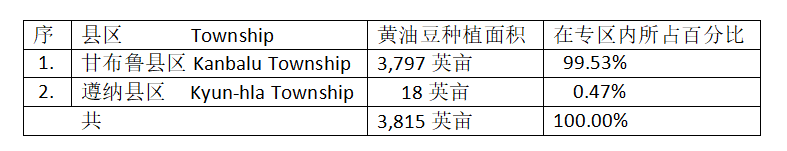 专区内的甘布鲁县区及遵纳(Kyun-hla)县区,在冬作物种植季节期间,种植的黄油豆面积分别如下表: