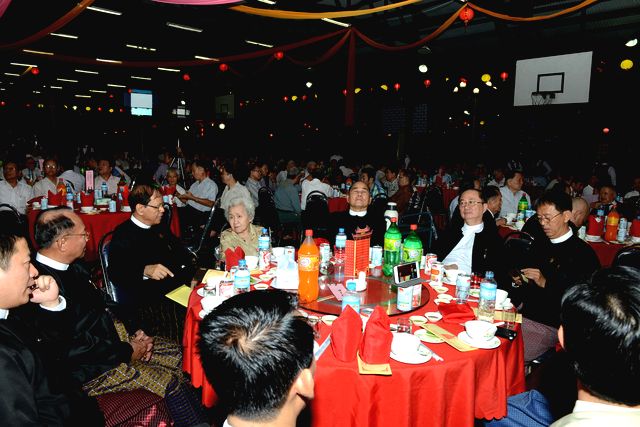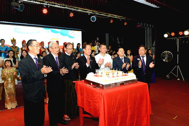 1月25日下午五时,庆典筹备委员会又在福山寺举行盛大宴会,庆祝周年庆典活动圆满成功。缅中友协会长吴盛温昂暨全体理事丶中国驻缅甸大使馆张鹏秘书暨使领馆官员、仰光和缅属地区各界侨团代表、宗姓团体代表、各同乡会代表出席了宴会,宴开一百席。