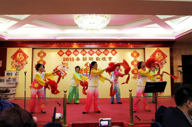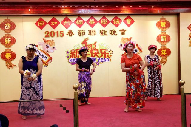 一串珍珠,粒粒璀璨,颗颗耀眼,用这几句话来形容今晚表演的文娱节目,并不为过。本会文娱组庄玉娇,林碧华,……等为今晚团拜演出付出了极大努力,在众多的女会员的配合下,有了今晚骄人的表现,「富贵花开满华堂」洒出满满喜气。傣族舞「我知道你对我好」,羡熬剩男,情意绵绵。「只是在人群中多看了你一眼」杨灿云歌伴舞,嘹亮甜美的歌声,婀娜优雅的伴舞,迷醉了台下的听众,喝彩之声哄动大厅。丘丽琴等的「夏威夷情歌」舞出了热浪,尽消寒意,增添了春宴的暖和气氛。多情狂热的苗族舞「多嘎多依」,「幸福山歌」演释出我们内心此刻的感受。尼尼温瑞的歌声,句句扣人心弦。缅甸会的独舞,步步引人乡思。「最美还是我们新疆」人逢佳节倍思亲,祖籍美丽的山川,兄弟民族日愈幸福的生活,也是我们寄以关怀的内容。久违一年的蒙古小姑娘,黄秀华长高了,那个骑马的舞姿,飞跃腾挪,娇娆俊美,更为成熟练达。生活在海外的华裔少女,民族舞艺能有这般造谐,来宾们均叹为观止。今年舞台上出现两个儿童舞,是南加州缅华族群文苑中的葩,应该受到重视和培植。