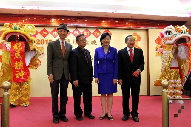 今年宴席六十多桌,参与贵宾,会员,舞员,工作的人员,估计将近七百余位。其中有当地政要和社会名流;美国联邦众议员:Honorable Dr. Judy Chu赵美心女士,缅甸驻洛杉矶总领事:U Aung Kyaw Zan。美国慈济会执行长:黄汉魁先生,圣盖博水务局:Mr. Thomas Wong先生,南加州缅甸协会会长:Mr. Henry Kao。美国缅甸医生协会会长:Dr. Thein Oo。美国缅甸牙医协会副会长:Dr. Tin Tin Htwe。美国缅甸工程协会会长:Mr. John Hundley。曼德礼新闻:Dr. Maung Maung Kyi 。缅甸新闻:Than Khine Bwor。缅甸电视:Mrs. Noelene Kao。美国缅甸华人兄弟社团代表:南加州客家协会:李文泉会长先生,夫人。洛城华中校友会:张少战会长先生,夫人。南加州南友联谊会:黎天宝名誉会长先生,夫人。南加州华英校友会代表。南加州华夏校友会代表。特邀贵宾:郭忠信先生,曾子川先生,阵祖才先生。此次团拜晚宴可说声势浩瀚,场面恢宏。